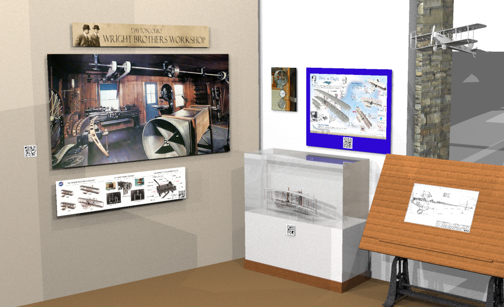 One additional interactive feature would be the use of augmented reality to allow visitors to use their own cell phones and other devices to access online links and a 3d model that can be virtually flown.